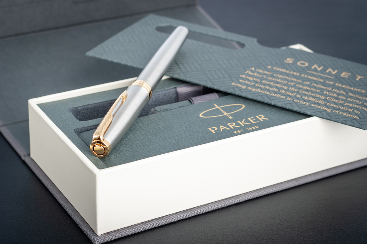 Ручка роллер Parker Sonnet Stainless Steel GT от официального дилера Parker в Сингапуре. Вы можете дополнительно заказать гравировку, которая подчеркнет Вашу оригинальность и придаст памятность статусному подарку. Все ручки Паркер поставляются в фирменном футляре.